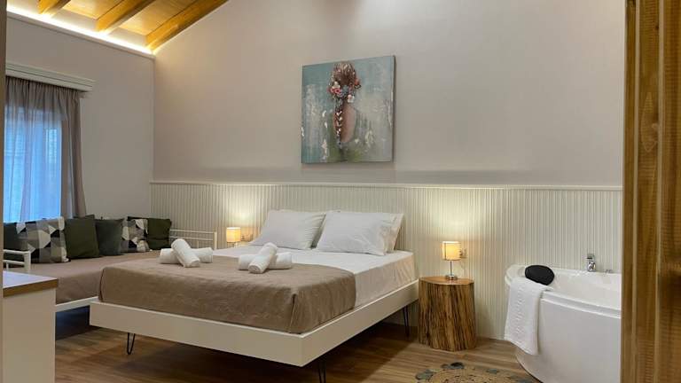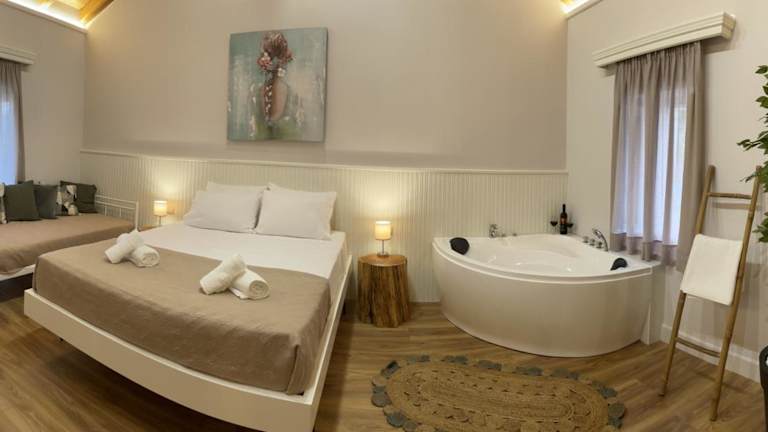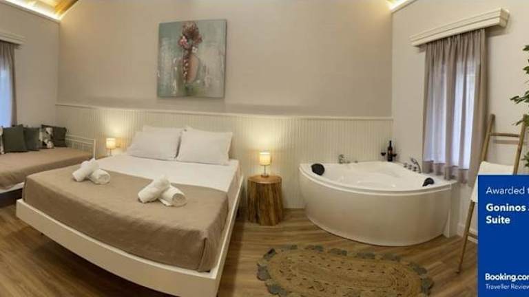 Die Goninos Jacuzzi Suite bietet eine heimelige Unterkunft mit einem Garten und einer Terrasse. Gäste können vor Ort einen Privatparkplatz nutzen und profitieren von kostenlosem Wifi. Die Unterkunft ist klimatisiert und eignet sich perfekt für einen entspannten Aufenthalt.