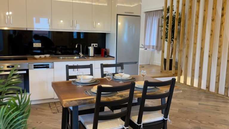 Das Ferienhaus ist mit einem Schlafzimmer, einer Küche, einem Kühlschrank und einem Geschirrspüler ausgestattet. Ein Flachbild-TV, ein Sitzbereich und ein Badezimmer mit einer Dusche gehören ebenfalls zur Ausstattung. Handtücher und Bettwäsche werden zur Verfügung gestellt. Zudem können Gäste den Whirlpool in der Unterkunft nutzen.