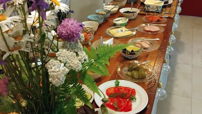 Ein als Buffet oder kontinentales Frühstück wird in der Unterkunft angeboten. Auf Anfrage sind auch spezielle Ernährungsbedürfnisse möglich. Es ist zudem eine Gemeinschaftsküche vorhanden, sowie Grillmöglichkeiten im Garten.