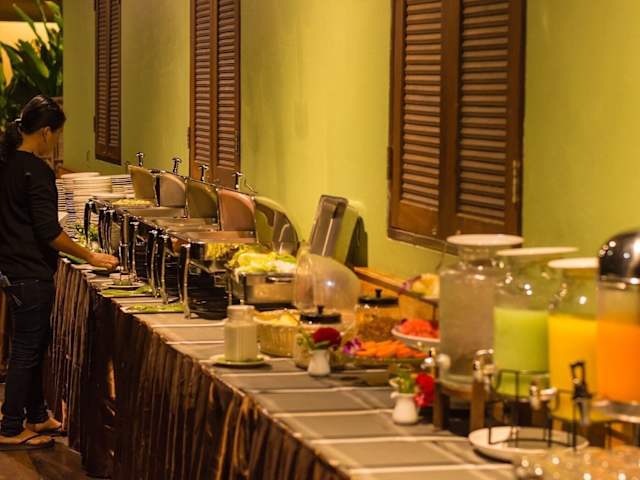 Im hauseigenen Restaurant wird eine breite Auswahl an thailändischen Spezialitäten serviert. Für spezielle Ernährungsbedürfnisse kann ebenfalls auf Anfrage eingegangen werden. Zudem besteht die Möglichkeit, Thai-Kochkurse zu buchen. Snacks und Drinks sind an der Bar erhältlich.