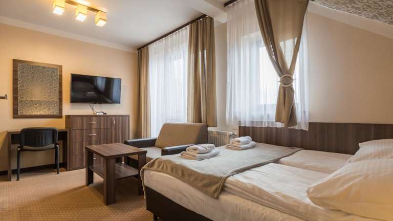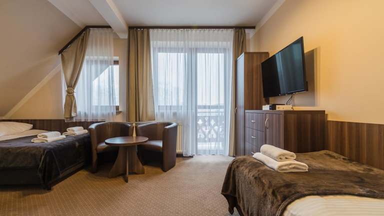 Das Hotel Poduszka Goprówka liegt in Szczawnica und befindet sich in unmittelbarer Nähe des Sessellifts Palenica. Dieser bringt Sie schnell und bequem zu den Skipisten und Wanderwegen der Umgebung. Die Gegend ist beliebt für Skifahren und Radfahren, und der Skilift Jaworki Homole ist nur 6 km entfernt. Der Flughafen Krakau-Balice ist etwa 87 km entfernt.