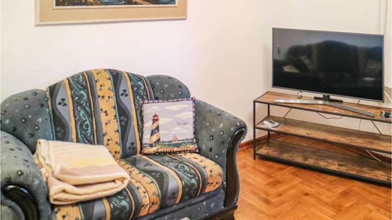 Die Ferienwohnung umfasst zwei Schlafzimmer, ein Wohnzimmer und eine voll ausgestattete Küche, die mit einem Kühlschrank und einer Kaffeemaschine ausgestattet ist. Das Badezimmer beinhaltet eine Dusche und trägt zur praktischen Ausstattung bei.
