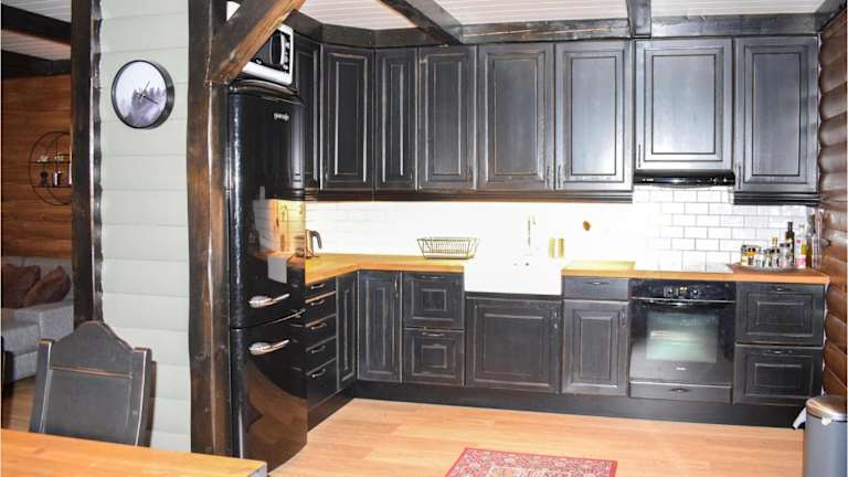 Die Unterkunft bietet einen behaglichen Rückzugsort und verfügt über 4 Schlafzimmer, ein Wohnzimmer sowie eine voll ausgestattete Küche mit Kühlschrank und Ofen.