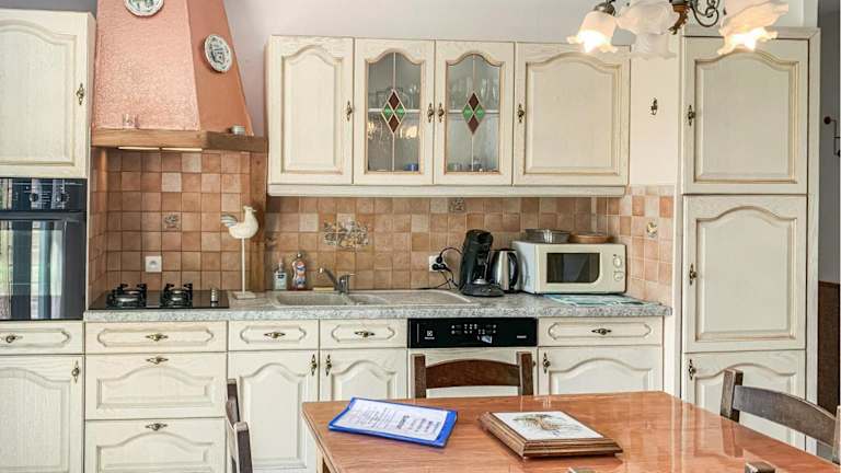 Die Unterkunft bietet eine voll ausgestattete Küche mit Kühlschrank und Geschirrspüler, ideal für die Zubereitung eigener Mahlzeiten.