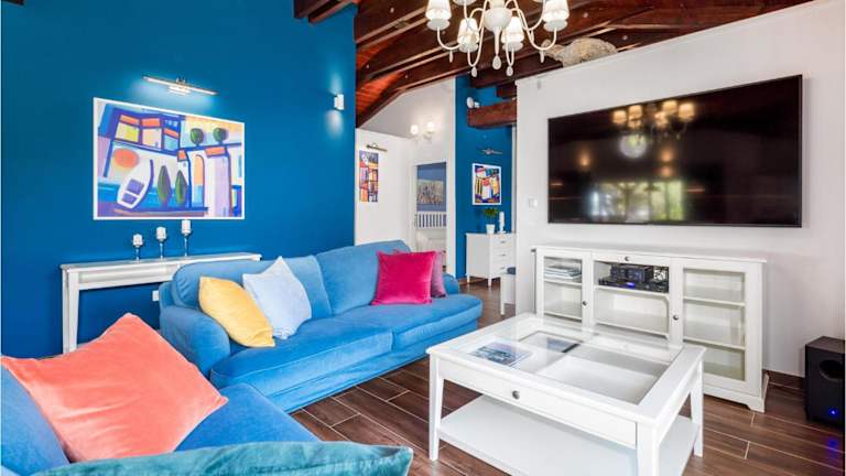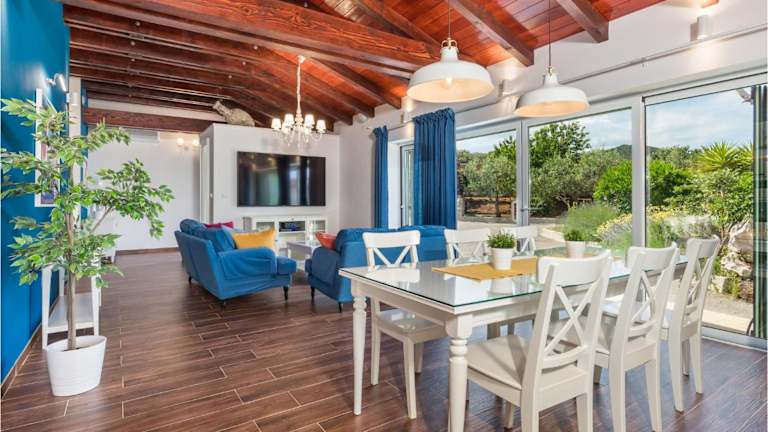 Das Ferienhaus verfügt über drei Schlafzimmer, ein Wohnzimmer und eine voll ausgestattete Küche, die mit einem Kühlschrank und einer Kaffeemaschine ausgestattet ist. Zudem gibt es drei Badezimmer mit Dusche und Whirlpool. Klimaanlage ist ebenfalls vorhanden.