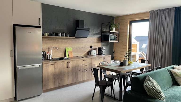 Die Zimmer der Unterkunft Górne Chaty Zawoja sind mit einem Sitzbereich, einem Satelliten-Flachbild-TV und einer voll ausgestatteten Küche ausgestattet. Zu den Annehmlichkeiten gehören ein Kühlschrank, ein Geschirrspüler, eine Mikrowelle, eine Herdplatte, ein Toaster, eine Kaffeemaschine und ein Wasserkocher. Zudem stehen ein eigenes Badezimmer mit Dusche und Haartrockner zur Verfügung.