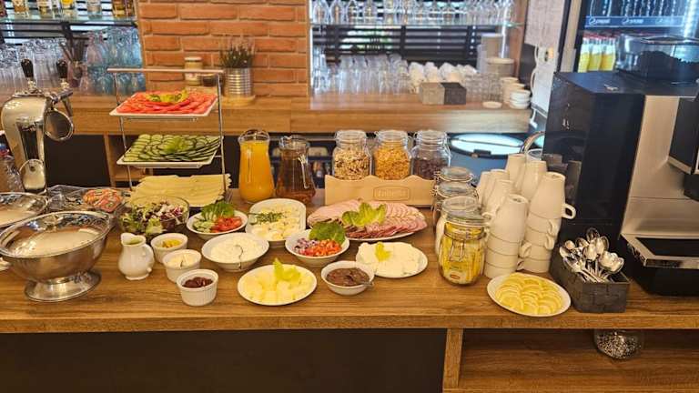 Ein Frühstück wird angeboten, bestehend aus einem vielseitigen Buffet mit kontinentalen und vegetarischen Optionen. Auf Anfrage werden auch Speisen für spezielle Ernährungsbedürfnisse bereitgestellt.