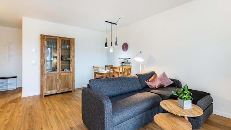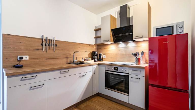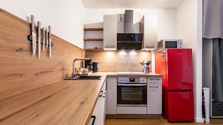 Die Ferienwohnung besteht aus 1 Schlafzimmer, einem Wohnzimmer und einer voll ausgestatteten Küche mit Kühlschrank und Kaffeemaschine. Zudem umfasst sie ein Badezimmer mit Dusche und kostenlosen Pflegeprodukten. Handtücher und Bettwäsche werden bereitgestellt.