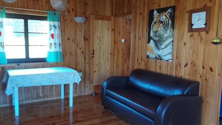 Gowidlino - Domek Letniskowy nad Jeziorem ist ein Ferienhaus, das eine heimelige Atmosphäre und eine Terrasse bietet. Die Unterkunft ist umgeben von einem Garten und bietet einen kostenlosen Privatparkplatz. Es sind keine Junggesellen- oder ähnliche Feiern erlaubt.