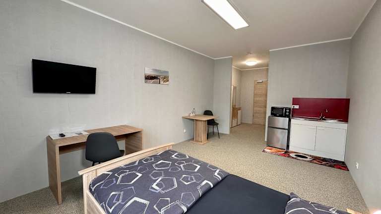 Die Zimmer sind mit einem Sitzbereich, einem Flachbild-TV sowie einem eigenen Badezimmer mit einer Dusche ausgestattet. Eine gemütliche Einrichtung sorgt für eine angenehme Bequemlichkeit während des Aufenthalts.