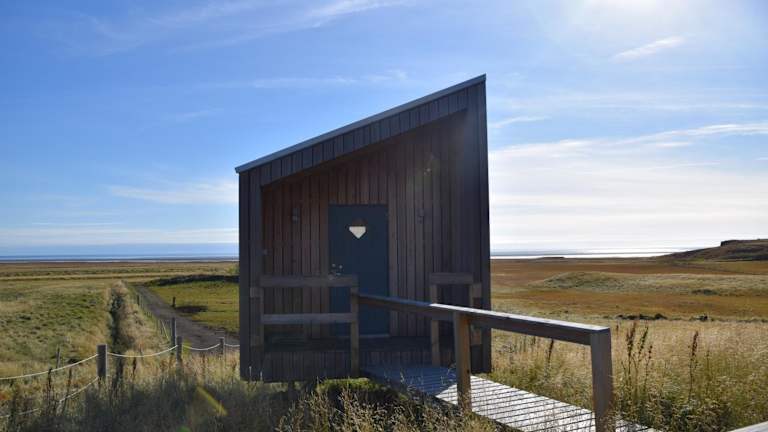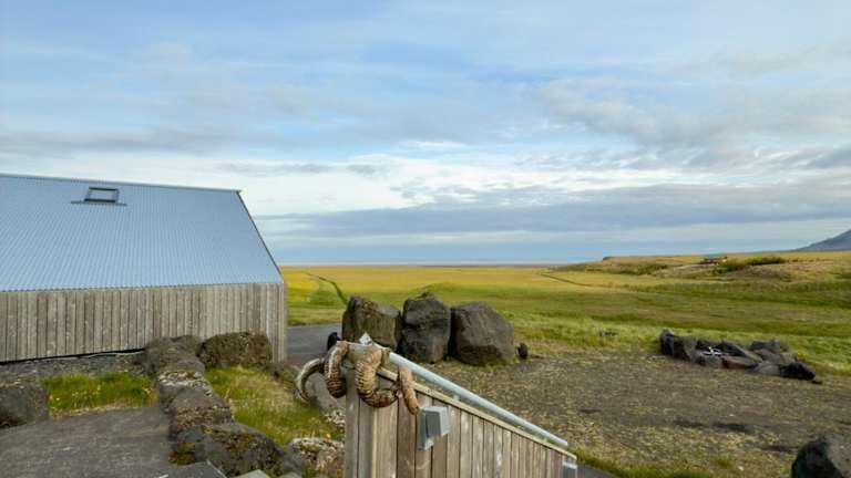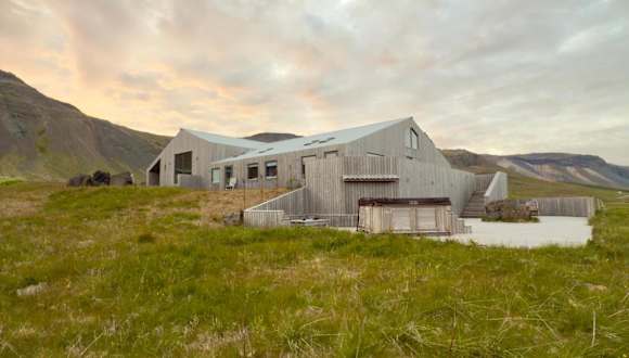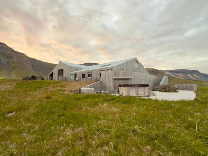 Die Unterkunft Grafarós House hat sich in Snæfellsbær niedergelassen und bietet Gästen eine malerische Umgebung mit Blick auf die Berge und das Meer.