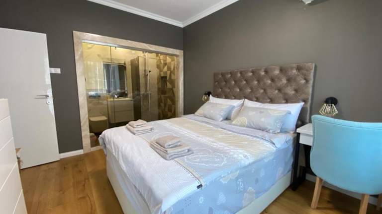 Die Ferienwohnung besteht aus zwei Schlafzimmern, einem Wohnzimmer sowie einer voll ausgestatteten Küche, die mit einem Kühlschrank und einer Kaffeemaschine ausgestattet ist. Zudem stehen den Gästen zwei Badezimmer mit Dusche und kostenlosen Pflegeprodukten zur Verfügung. Handtücher und Bettwäsche werden bereitgestellt.