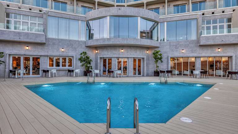 Das Gran Hotel Almería liegt direkt neben einem Yachthafen im geschäftigen Zentrum von Almeria. Der Strand ist nur etwa 700 Meter entfernt, während das Stadtzentrum in rund 500 Metern zu erreichen ist. Der Bahnhof befindet sich in einem Kilometer Entfernung und der Flughafen ist etwa 7 Kilometer vom Hotel entfernt.