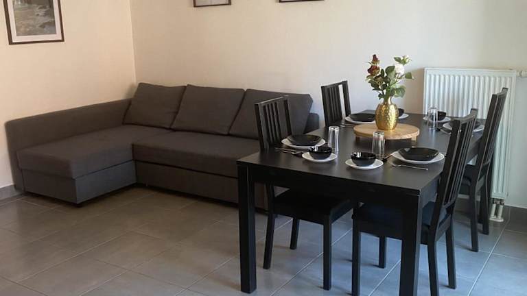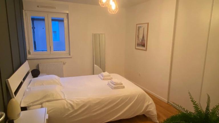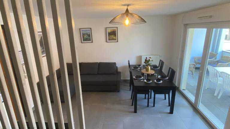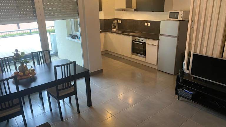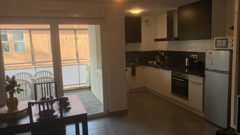 Grand 2 pièces Eurométropole de Strasbourg proche Europa Park avec terrasse bietet Übernachtungsmöglichkeiten in einer ruhigen Umgebung. Die Ferienwohnung umfasst ein Schlafzimmer, ein Wohnzimmer und eine voll ausgestattete Küche.