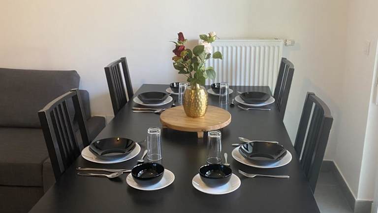 Die Ferienwohnung verfügt über ein Schlafzimmer, ein Wohnzimmer, eine voll ausgestattete Küche mit Kühlschrank und Kaffeemaschine sowie ein Badezimmer mit Dusche und Haartrockner. Handtücher und Bettwäsche werden bereitgestellt.