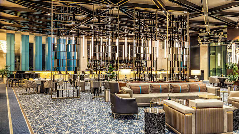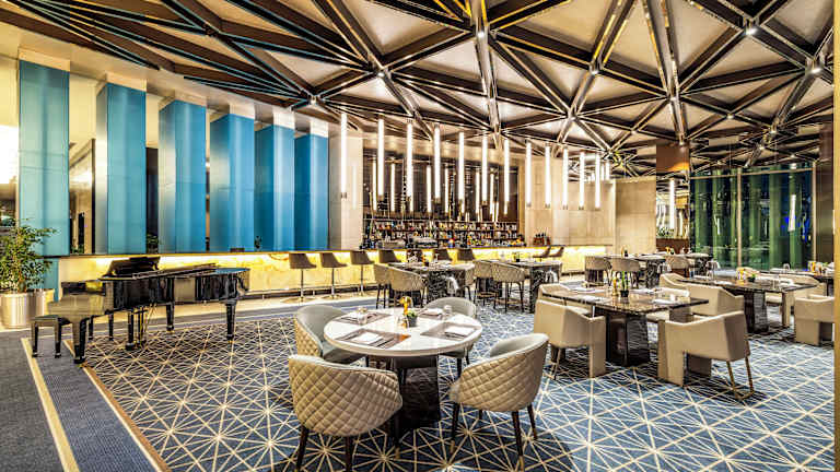 Das Brasserie Restaurant bietet ein Buffetmenü mit internationaler Küche, das den ganzen Tag über verfügbar ist. Gäste können im Lobbybar Tapas und andere leichte Gerichte geniessen. Zusätzliche gastronomische Optionen wie Zimmerservice sind ebenfalls vorhanden.