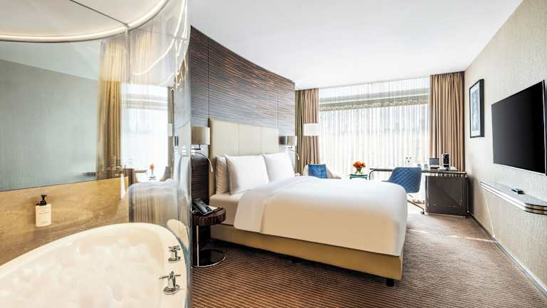 Die Zimmer im Grand Ankara Hotel Convention Center sind mit einem interaktiven Flachbild-TV und einem Badezimmer mit tiefem Badewanne ausgestattet. Einige Zimmer verfügen über eine eigene Wellnessbadewanne mit Blick auf Ankara. Die Bequemlichkeit ist in jedem Aspekt der Zimmergestaltung vorhanden.