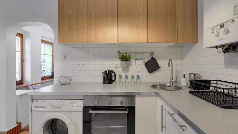 Die Ferienwohnung bietet ein Schlafzimmer, ein Wohnzimmer mit einem Flachbild-TV und Kabelkanälen sowie eine voll ausgestattete Küche mit Kühlschrank und Geschirrspüler. Ein Badezimmer mit Dusche ist ebenfalls vorhanden. Handtücher und Bettwäsche werden bereitgestellt.