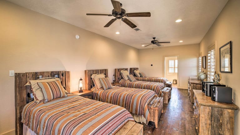 Das Grand Bellville Estate at Clear Creek Ranch in Bellville bietet seinen Gästen eine komfortable Unterkunft mit kostenfreiem WLAN und einer Terrasse. Das Ferienhaus verfügt über 6 geräumige Schlafzimmer und eine gut ausgestattete Küche. Handtücher und Bettwäsche werden gestellt, um den Aufenthalt noch angenehmer zu gestalten. Die Lage des Ferienhauses ermöglicht eine gute Anbindung an den Flughafen Easterwood, der nur 96 km entfernt ist.