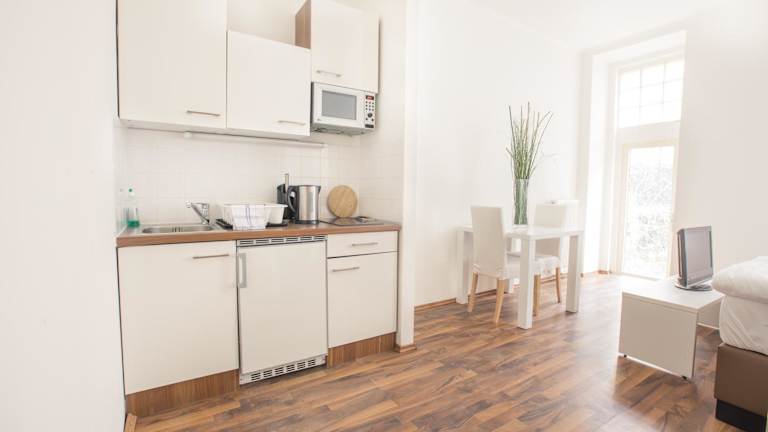 Die Apartments verfügen über eine Küche oder eine Küchenzeile. Ausgestattet sind sie mit einer Kaffeemaschine, einem TV und einem Badezimmer mit einem Haartrockner. Einige Unterkünfte bieten Gartenblick.