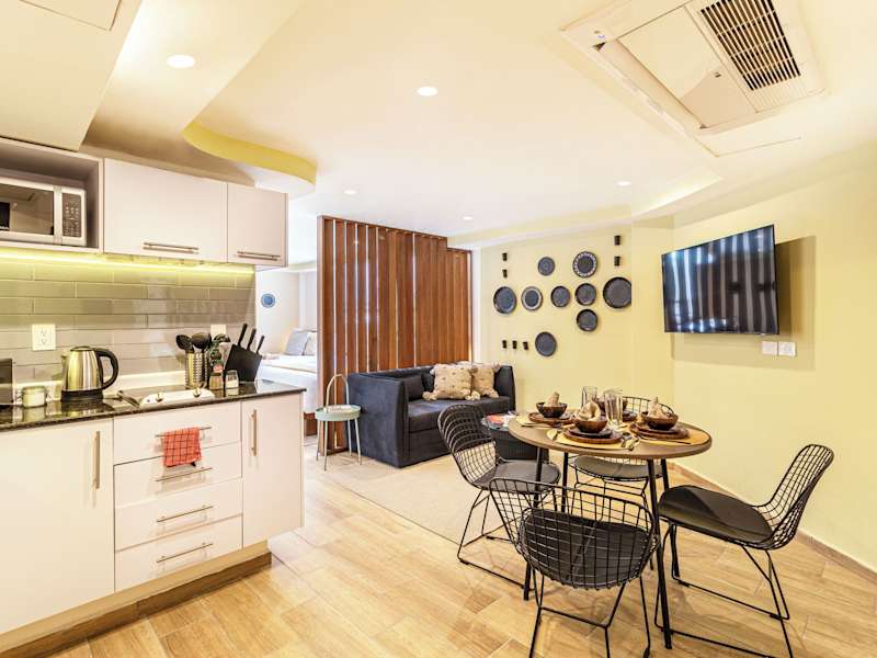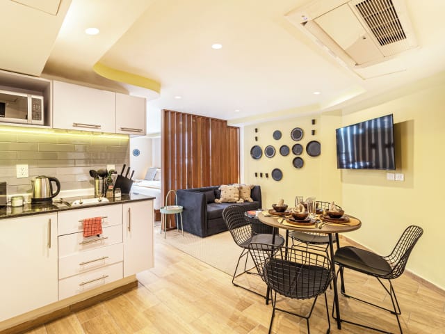 Die Zimmer des Grand Chapultepec Residencial sind mit einer Klimaanlage ausgestattet und bieten ein behagliches Raumklima durch Heizung. Zur Ausstattung gehören ein Doppelbett, ein Queensize-Bett oder ein Kingsize-Bett sowie eine Kaffeemaschine. Die hellen Einheiten verfügen über einen Flachbild-TV mit Satellitenkanälen, eine Küche, einen Essbereich, einen Safe und ein eigenes Badezimmer mit Dusche und kostenlosen Pflegeprodukten. Bettwäsche und Handtücher sind ebenfalls vorhanden. Einige Wohneinheiten bieten zudem einen Stadtblick.