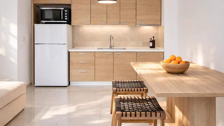 Die Suite verfügt über 1 Schlafzimmer und 1 Badezimmer. Zur Ausstattung gehören Bettwäsche, Handtücher, ein Flachbild-TV, ein Essbereich sowie eine voll ausgestattete Küche. Ein Balkon mit Gartenblick rundet die Bequemlichkeit ab.