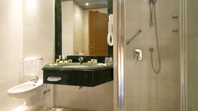 Die klimatisierten Zimmer sind mit einem Doppelbett, einem Queensize-Bett oder einem Kingsize-Bett ausgestattet. Des Weiteren verfügen sie über einen Safe, eine Minibar und einen Schreibtisch. Zur Unterhaltung stehen Direktwahltelefon, TV mit Satelliten-/Kabelempfang und Radio zur Verfügung. Im Badezimmer sind eine Dusche, eine Badewanne, Kosmetikartikel und ein Föhn vorhanden. Auch rollstuhlgerechte Zimmer sind buchbar.
