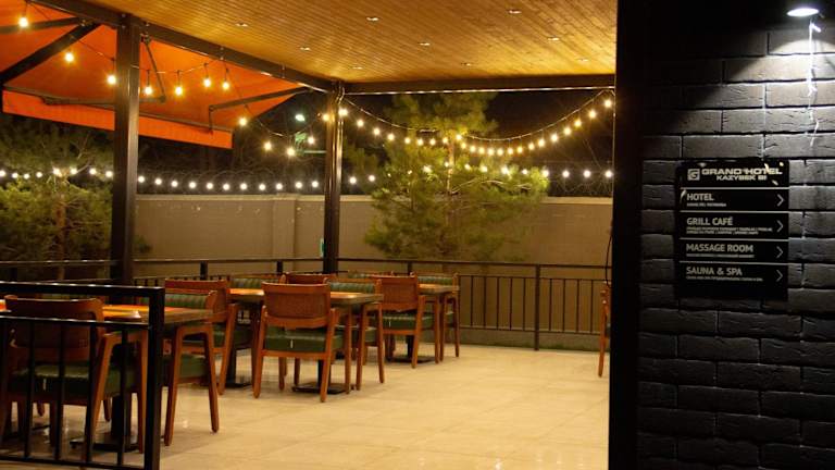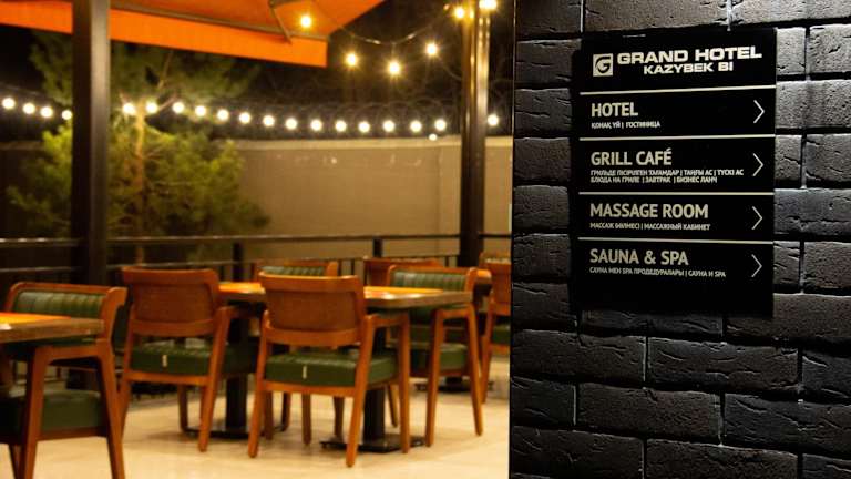 Gäste eines Aufenthalts im Grand Hotel Kazybek Bi können ein Frühstück in Buffetform geniessen. Das Hotel verfügt über ein Restaurant und ein Café, wo eine Vielzahl an Speisen und Getränken angeboten wird.