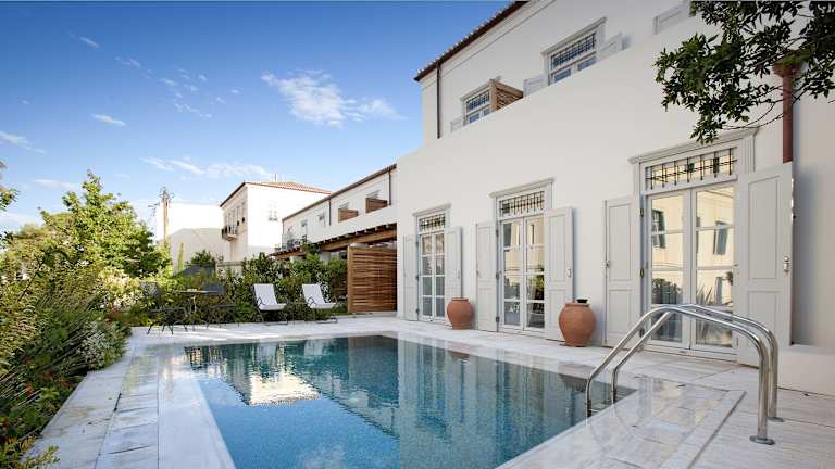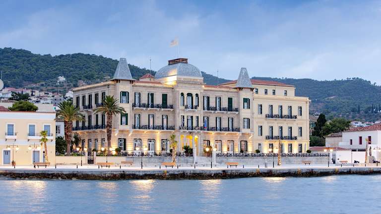 Das Grand Hotel Poseidonion befindet sich in der malerischen Umgebung von Spetses Island, etwa 200 m vom Stadtzentrum entfernt. Die Gäste erreichen die schönen Sandstrände und versteckten Buchten nach einem kurzen Spaziergang. In der Nähe befinden sich interessante Monumente, wie das Bouboulinas Museum und das Spetses Museum.