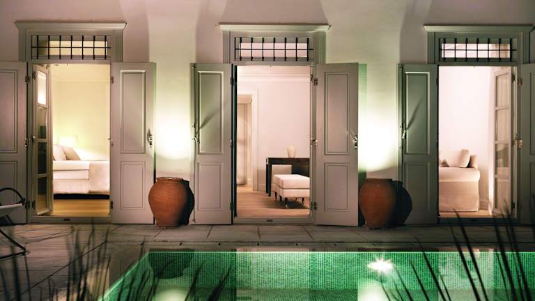 Das Grand Hotel Poseidonion wurde 1914 erbaut und umfasst 44 Doppelzimmer sowie 8 Suiten auf 3 Etagen, die über zwei Aufzüge erreichbar sind. Das Hotel bietet seinen Gästen verschiedene Dienstleistungen, darunter einen Empfangsbereich mit mehrsprachigem Personal, WLAN in den öffentlichen Bereichen sowie einen Garten zur Entspannung. Zu den weiteren Einrichtungen zählen ein Spielzimmer, eine Bibliothek und ein TV-Raum.