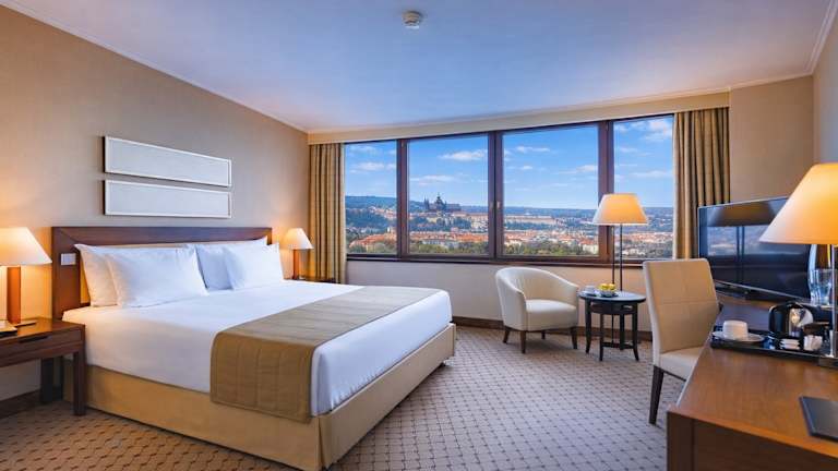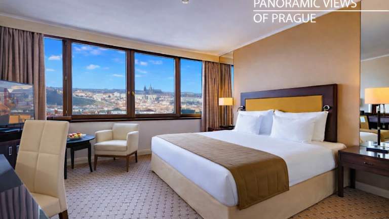 Das Grand Hotel Prague Towers bietet seinen Gästen einen luxuriösen Aufenthalt mit atemberaubendem Panoramablick auf die Stadt. Die Lage des Hotels ist ideal, nur zwei U-Bahn-Stationen vom Zentrum entfernt. Die Zimmer sind komfortabel und mit modernen Annehmlichkeiten ausgestattet. Besonders hervorzuheben ist der Wellnessbereich auf der obersten Etage mit Pool und die Executive Lounge, die zusätzliche Annehmlichkeiten bietet. Das Hotel verfügt über verschiedene gastronomische Einrichtungen, in denen internationale Küche serviert wird.
