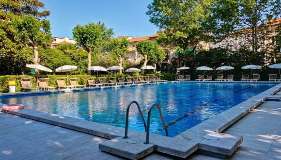 Das 4-Sterne BEST WESTERN Grand Hotel Royal Viareggio bietet perfekte Voraussetzungen für Urlauber, die einen angenehmen Badeurlaub in Viareggio verbringen möchten. Die Urlauber haben diesem Hotel das Prüfsiegel HolidayCheck Quality Selection 2014 verliehen. Die Umgebung des Hotels bietet den Hotelgästen einige Sehenswürdigkeiten, wie zum Beispiel den Strand Viareggio. Nach einer kurzen Autofahrt können Sie den Hafen Viareggio erreichen. Ab Januar 2019 ist das Rauchen in allen Bereichen des Hotels verboten. Im Sommer gibt es vor allem abends Musik vor dem Hotel
