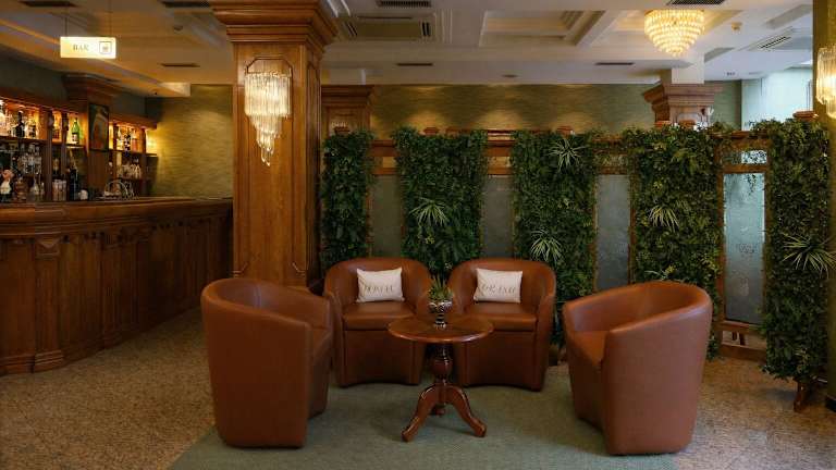Die gastronomischen Einrichtungen umfassen ein Nichtraucherrestaurant mit à-la-carte-Möglichkeiten, ein Frühstücksbuffet sowie eine Bar mit Terrasse. Die Verpflegungsoptionen beinhalten Frühstück, Halbpension und Vollpension, mit diätischen Gerichten und speziellen Menüs nach Wunsch.