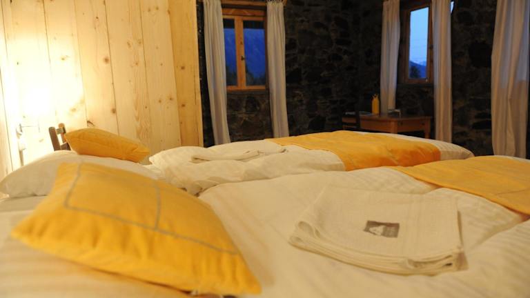 Die Zimmer in der Unterkunft Grand Hotel Ushba sind mit Bettwäsche und Handtüchern ausgestattet.