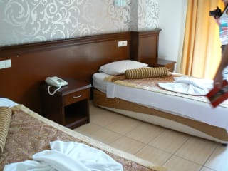 Das Hotel befindet sich in Kemer, etwa 600 m vom hoteleigenen Sandstrand entfernt. Der Flughafen Antalya (AYT) liegt ca. 55 km entfernt. Das Stadtzentrum erreichst du in rund 50 m. Der Strand verfügt über Liegen und Sonnenschirme, die gegen Gebühr erhältlich sind.