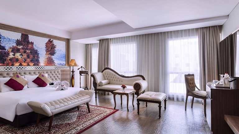 Das Grand Mercure Yogyakarta Adi Sucipto wurde 2016 eröffnet und bietet ein freundliches Ambiente mit einem 24h-Check-in. Zu den Einrichtungen gehören ein Garten, eine Sonnenterrasse mit Pool und zahlreiche Aufenthaltsmöglichkeiten. Ein Business-Center sowie Konferenzräume stehen ebenfalls zur Verfügung. Die Unterkunft ist rollstuhlgerecht und bietet neben einem Aufzug auch verschiedene behindertengerechte Annehmlichkeiten. Ein Shuttleservice ist verfügbar, und es gibt eine Auswahl an Geschäften vor Ort, die zum Stöbern einladen.