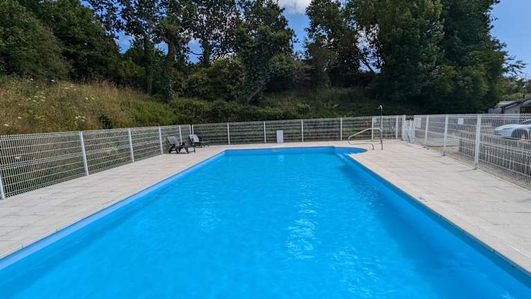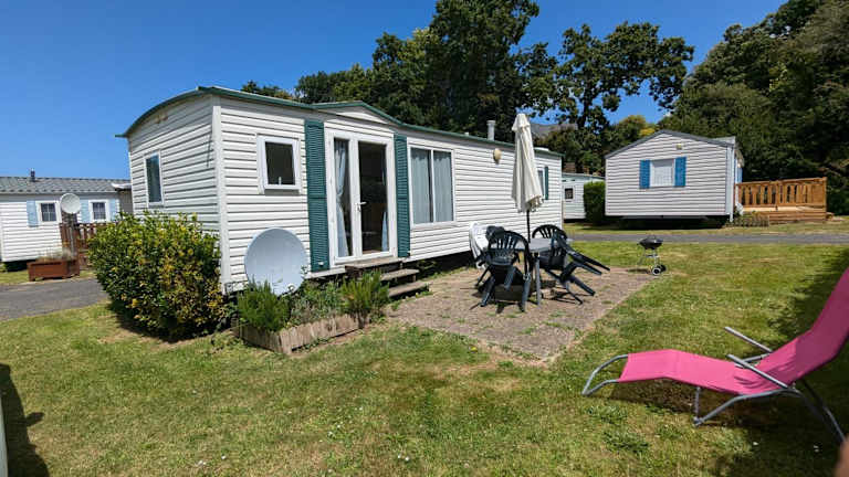 Grand Mobilhome 4 pers 2025 - Granit Rose - Piscine bietet heimelige Übernachtungsmöglichkeiten in einem Mobilheim mit Terrasse und Gartenblick. Die Unterkunft ist privat geführt und ermöglicht Familien und Gästen eine entspannte Atmosphäre.