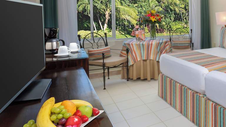 Die klimatisierten Zimmer bieten eine komfortable Ausstattung mit Balkon oder Terrasse, Minibar, Kaffeemaschine und Safe. Zur Standardausstattung gehören auch ein TV mit Kabelanschluss sowie kostenfreies WLAN. Die Badezimmer sind mit Dusche, Haartrockner und Kosmetikartikeln ausgestattet.