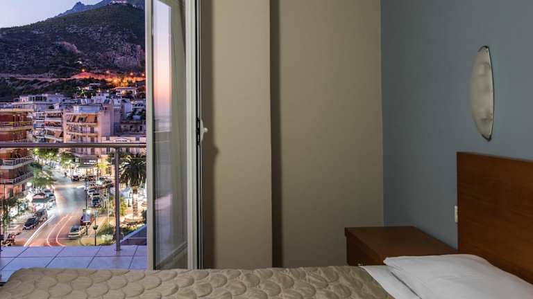 Das Hotel liegt in Loutraki, einer Stadt in der Nähe von Korinth und ca. 85 km von Athen entfernt. Die Entfernung zum Strand beträgt ca. 50 m. In der Umgebung gibt es viele Restaurants, in denen man frischen Fisch und traditionelle griechische Gerichte geniessen kann. Loutraki ist bekannt für sein Quellwasser und die luxuriösen Wellnesseinrichtungen. Das Kasino gilt als eines der grössten in Europa. Die nächsten Haltestellen von Bus und Bahn sind nur rund 600 m entfernt. Der Strand ist kiesig, Liegen und Sonnenschirme sind gegen Gebühr verfügbar.