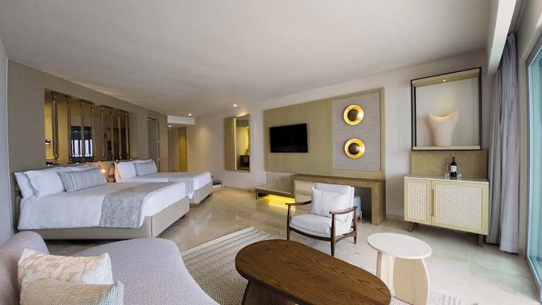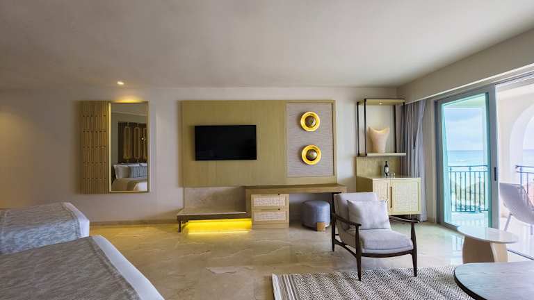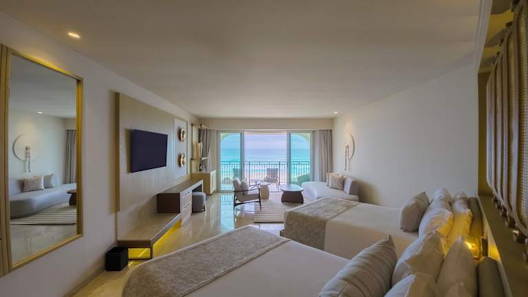 Die Zimmer sind mit einer Klimaanlage ausgestattet und bieten meist einen Balkon. Zur Standardausstattung zählen ein Doppelbett, ein Safe, eine Minibar sowie eine Tee-/Kaffeemaschine. Zusätzlich gibt es ein TV-Gerät und kostenfreies Wifi. Die Badezimmer sind mit Dusche und Badewanne ausgestattet, barrierefreie Badezimmer sind auf Anfrage verfügbar.