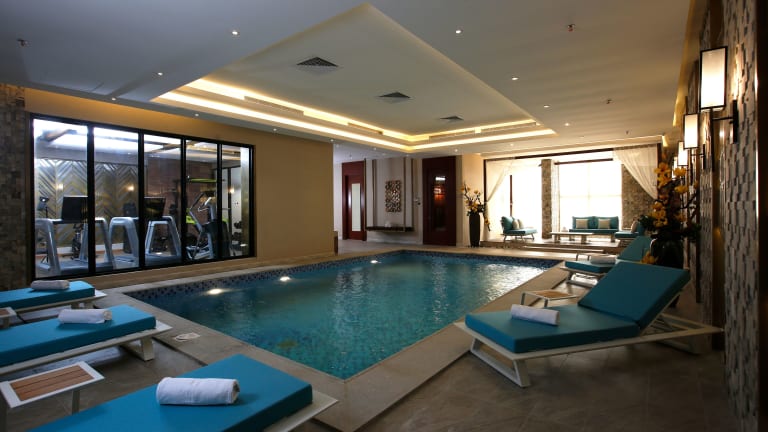 Das Grand Plaza Hotel - Jazan bietet umfassende und moderne Übernachtungsmöglichkeiten in einer klimatisierten Umgebung. Die Unterkunft hat einen Garten und umfasst zahlreiche Annehmlichkeiten, darunter ein Restaurant, Zimmerservice, ein Fitnesscenter und eine Sauna. Eine rund um die Uhr besetzte Rezeption sorgt für einen reibungslosen Aufenthalt.
