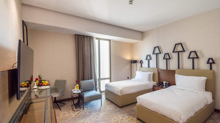 Die Zimmer bieten eine angenehme Ausstattung mit Klimaanlage, einem Wohnzimmer und einem Badezimmer. Die Gäste schlafen auf einem Kingsize-Bett und können auf Zustellbetten zurückgreifen. Ausgestattet sind die Zimmer auch mit einer Minibar, einem Schreibtisch, einer Tee-/Kaffeemaschine, einem Telefon und einem TV-Gerät. Zu den Annehmlichkeiten gehören auch Hausschuhe, Haartrockner und ein Kosmetikspiegel.