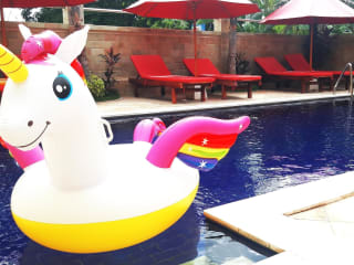 Die Unterkunft bietet verschiedene Freizeitaktivitäten wie Schnorcheln (ausserhalb der Unterkunft, zu zusätzlichen Gebühren) und Massagen, darunter Rücken-, Nacken-, Fuss-, Kopf- und Ganzkörpermassagen. Der umzäunte Pool und die Sonnenliegen sorgen für Entspannung.