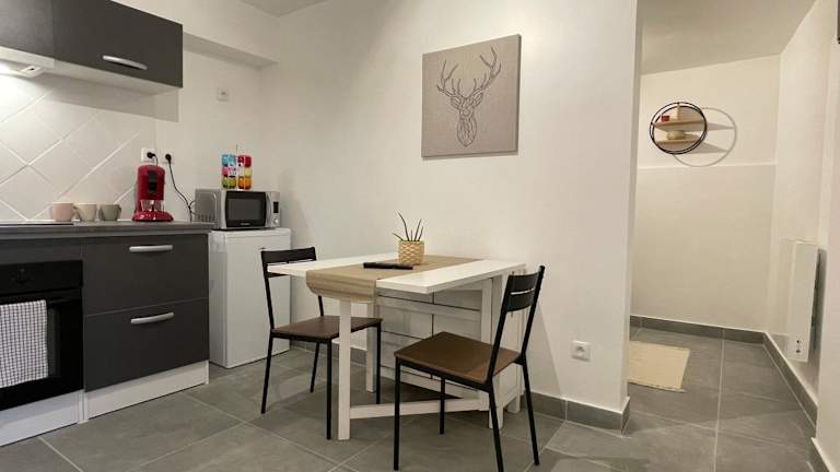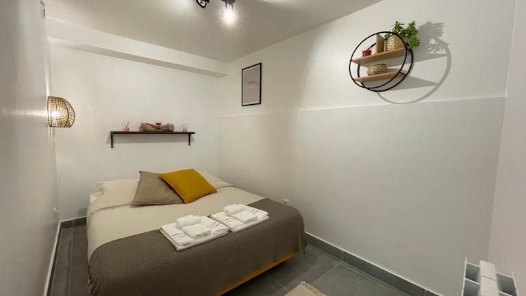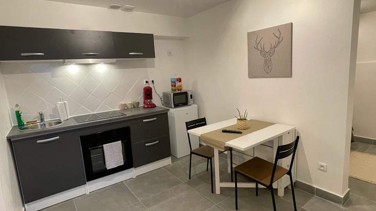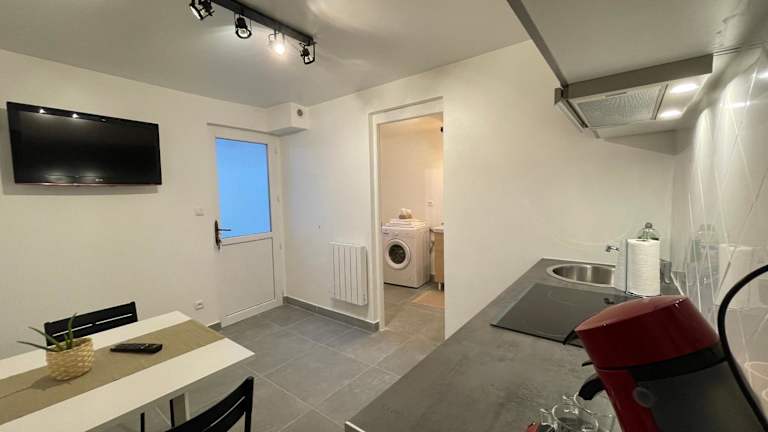 Die Ferienwohnung umfasst 1 Schlafzimmer und ist ausgestattet mit einem Flachbild-TV mit Kabelkanälen sowie einer voll ausgestatteten Küche. Diese bietet den Gästen einen Kühlschrank, einen Ofen, eine Waschmaschine, eine Mikrowelle und eine Herdplatte. Handtücher und Bettwäsche werden zur Verfügung gestellt.