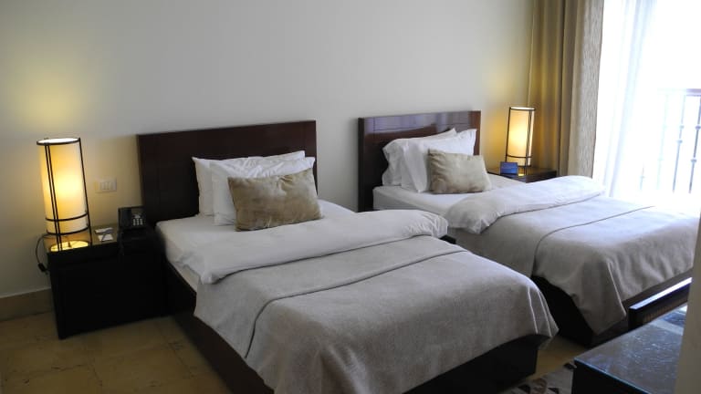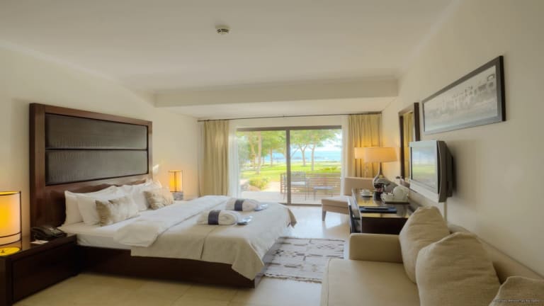 Die Zimmer sind ausgestattet mit Klimaanlage und Heizung, einem Balkon oder einer Terrasse mit Meerblick, einem Doppelbett und einem Sofabett. Zu den Annehmlichkeiten gehören ein Safe, eine Minibar, eine Tee-/Kaffeemaschine, Fernseher, WiFi sowie ein Badezimmer mit Dusche und Haartrockner. Es sind auch rollstuhlgerechte Zimmer mit barrierefreiem Badezimmer verfügbar.