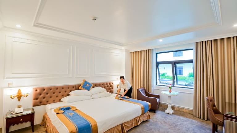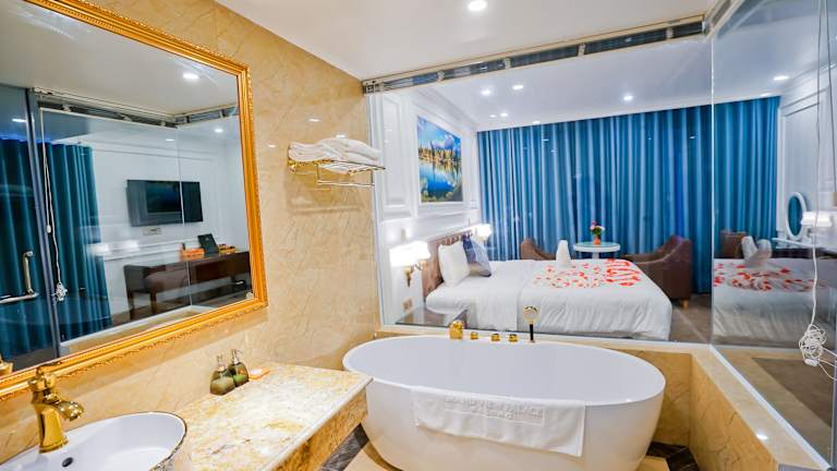 Die klimatisierten Zimmer im GRAND VIEW PALACE HA LONG HOTEL sind mit einem Schreibtisch, Wasserkocher, Minibar, Safe, Flachbild-TV sowie einem eigenen Badezimmer ausgestattet. Bettwäsche und Handtücher sind in jedem Zimmer verfügbar, und es gibt allergikerfreundliche Zimmer. Zur Ausstattung gehören auch Annehmlichkeiten wie eine Schallisolierung.