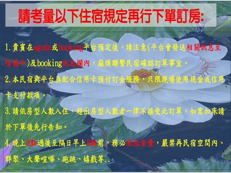 Die Unterkunft bietet Rabatte für Velomietungen an und ermöglicht den Gästen, die schönen Umgebung auf zwei Rädern zu erkunden. Zudem werden kostenpflichtige Transferdienste zum Sun Moon Lake und weiteren Sehenswürdigkeiten angeboten. Es ist empfehlenswert, diese Dienste einen Tag im Voraus zu reservieren.