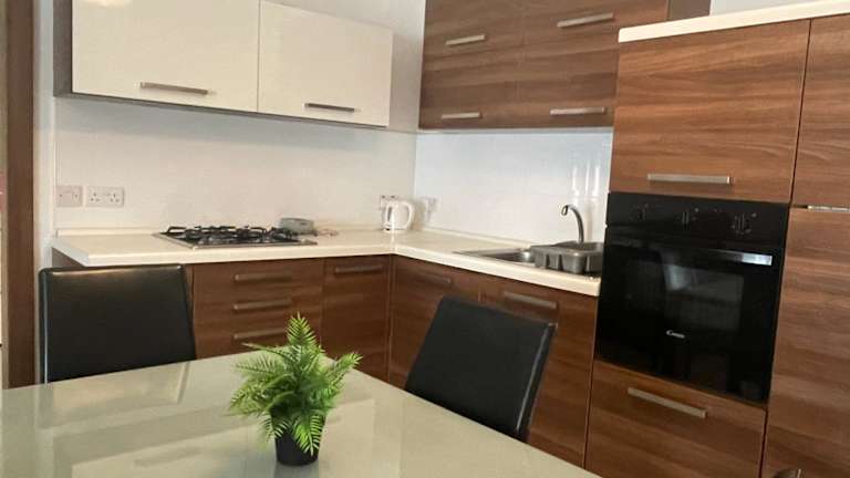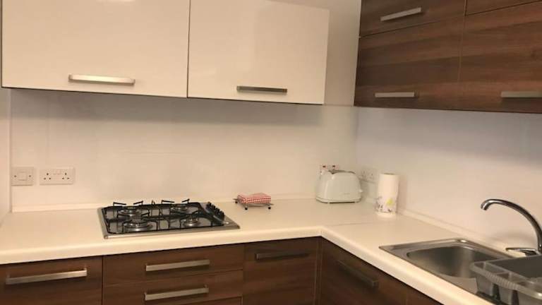 Die Ferienwohnung verfügt über ein Schlafzimmer und ist mit einer Küche ausgestattet, die einen Kühlschrank und einen Ofen beinhaltet. Zudem stehen den Gästen zwei Badezimmer mit Dusche, kostenlosen Pflegeprodukten und einer Waschmaschine zur Verfügung. Handtücher und Bettwäsche werden bereitgestellt, was zusätzlichen Komfort bietet.