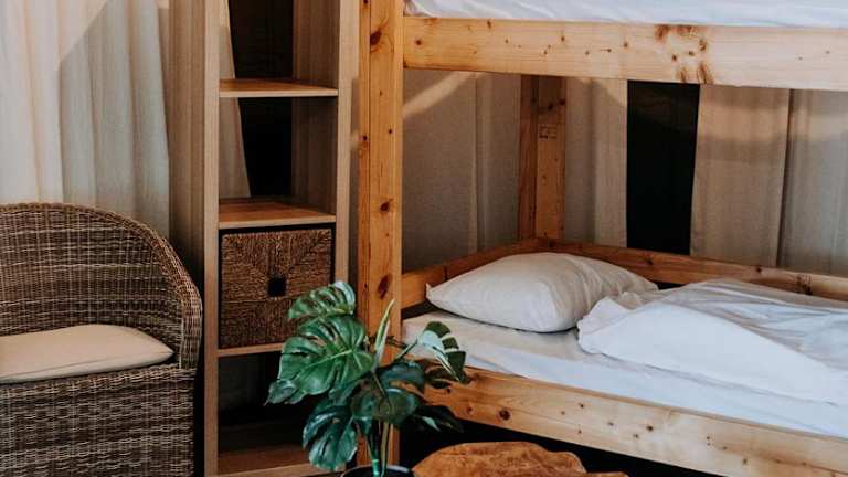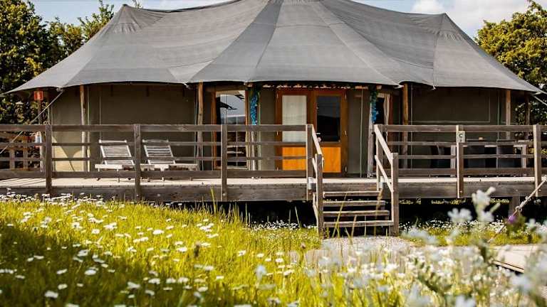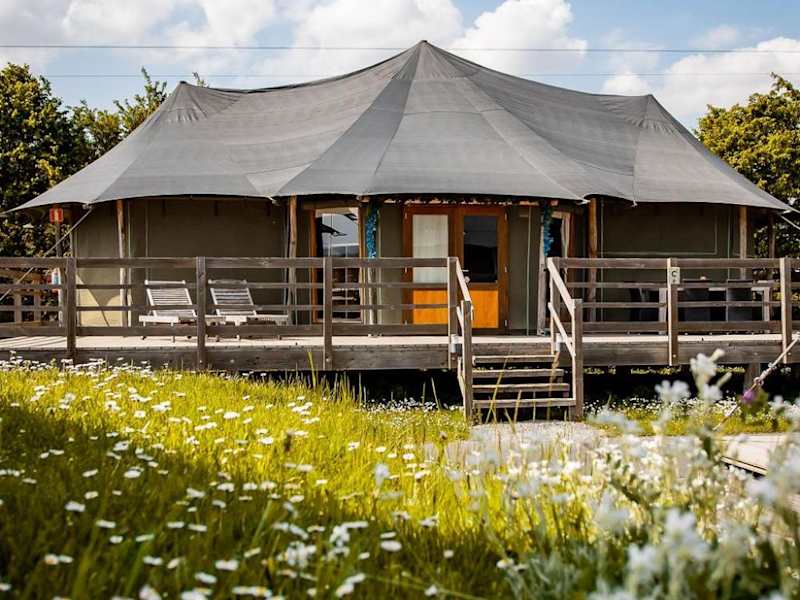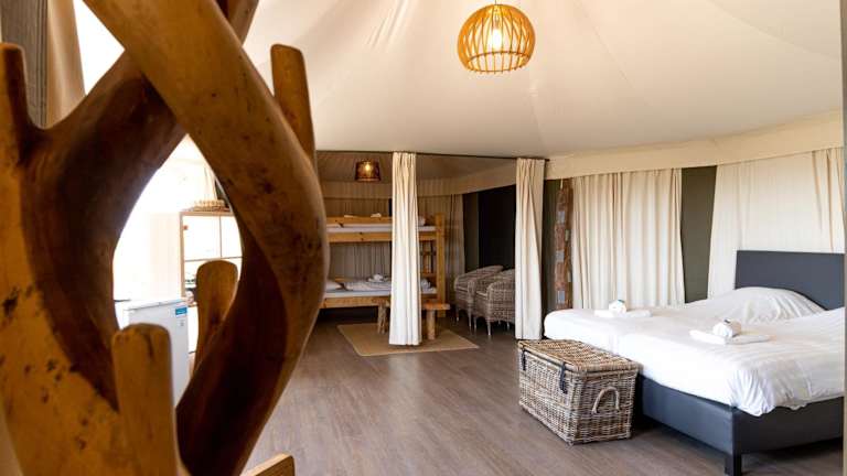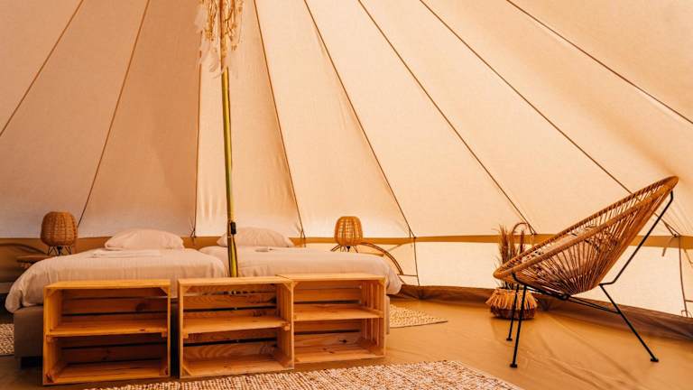 Die Glamping-Zelte sind heimelig und gut ausgestattet mit allem Nötigen für einen angenehmen Aufenthalt. Sie bieten sowohl Grundausstattung als auch besondere Annehmlichkeiten in den Deluxe Zelte, die zusätzliche Privatsphäre und Komfort bieten.