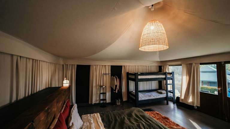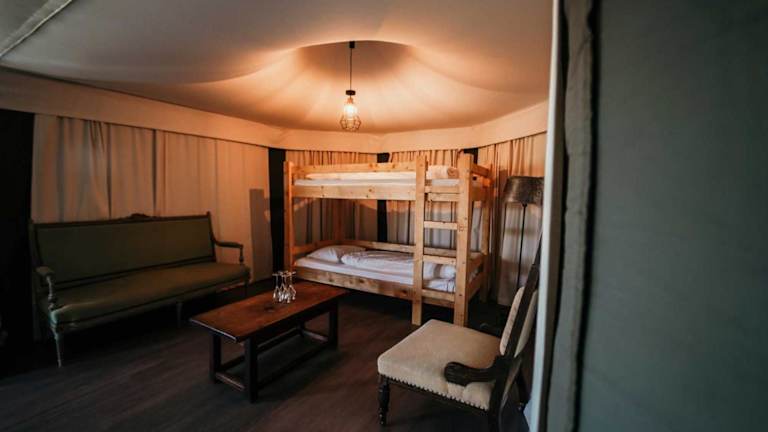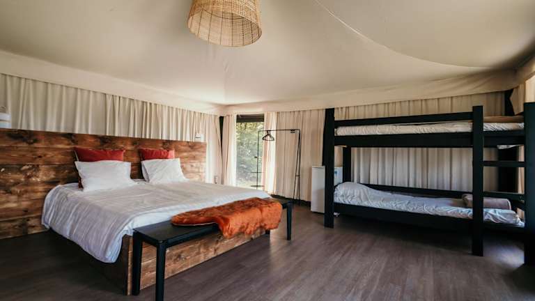 Das Hotel bietet Glamping-Zelte, die über bequeme Betten, Beleuchtung und Steckdosen verfügen. Die meisten Wohneinheiten sind mit einer individuell regulierbaren Heizung ausgestattet. Die Deluxe Zelte haben zudem einen eigenen Sitzbereich und ein Badezimmer mit Dusche, WC und Waschbecken. Zudem gibt es einen gemütlichen Gaskamin in den Deluxe Zelte.
